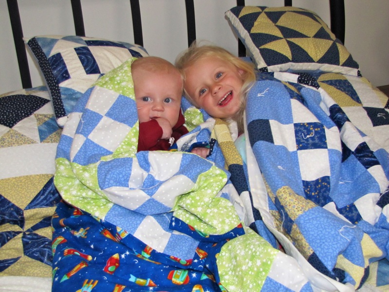 The Tappers have been a part of my life for as long as I can remember. They are more than family friends, they are part of our family. When Steve and I got married, Pat made us a beautiful quilt that we LOVE! when Penny was born, much to my surprise, she made a quilt for her with the same fabric. Teddy was just as lucky to get one too. Thanks again, the Margheim’s love their quilts!!