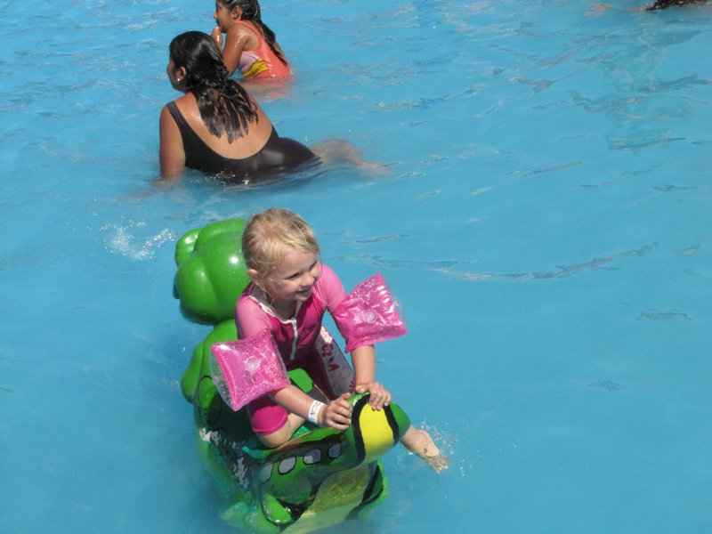 We had a fantastic time today, celebrating Penny’s last day of summer break. We had a lazy morning at home, then we all went to Penny’s favorite restaurant for lunch (McD’s), then Penny and Mommy headed to the beach with Suzy and played on the inflatable toys, then we met up with some friends for drinks and the kids played in the sand and ocean, and then we went and saw a dinosaur exhibit. Penny had a wonderful time with everyone. When we got home, she told Papi all about her adventures. Her favorite part was playing in the ocean. Maybe we’ll head back to the beach over the weekend.