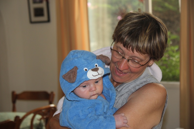 The other day, Penny and Grams gave Teddy a bath. He is getting so big and is holding his head up really well!!