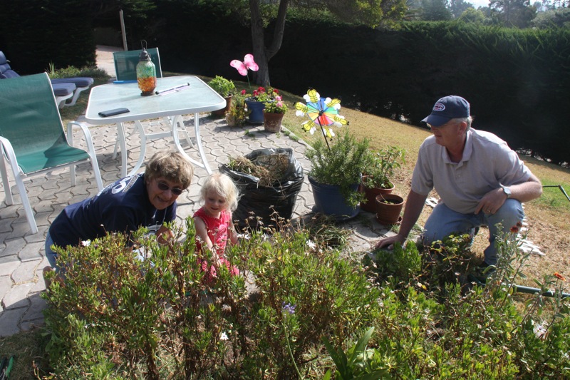 Grams, Pa Tom and Grandpa are teaching Penny how too take care of our yard!
