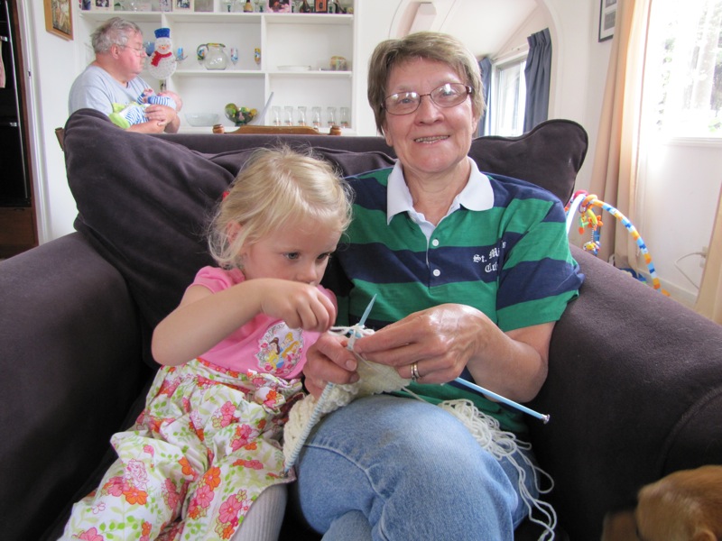 Knitting with Grams- Penny will be a pro by the end of this visit!