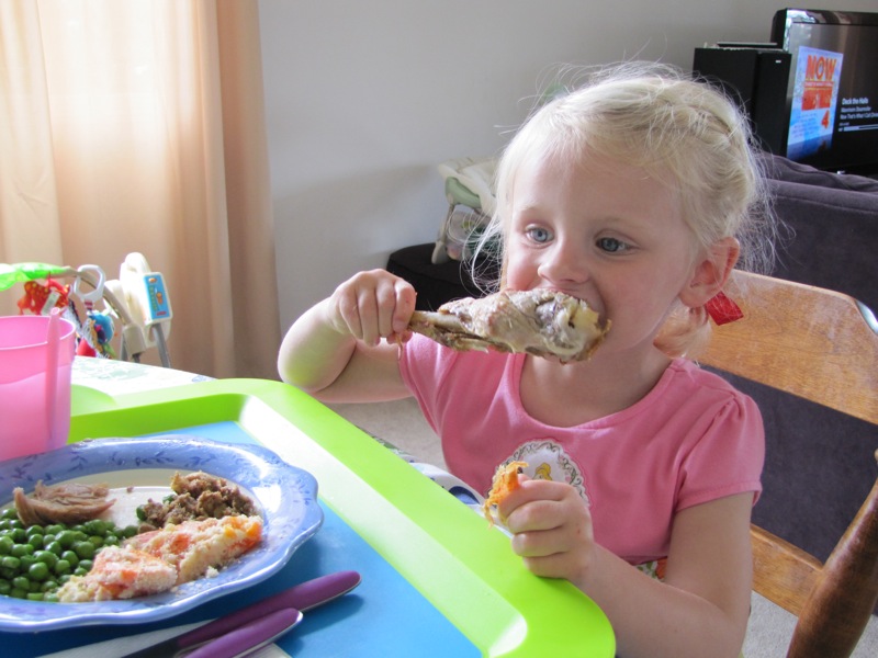Having leftover turkey dinner- Penny had to fight Grandpa Tom for the drumstick!!