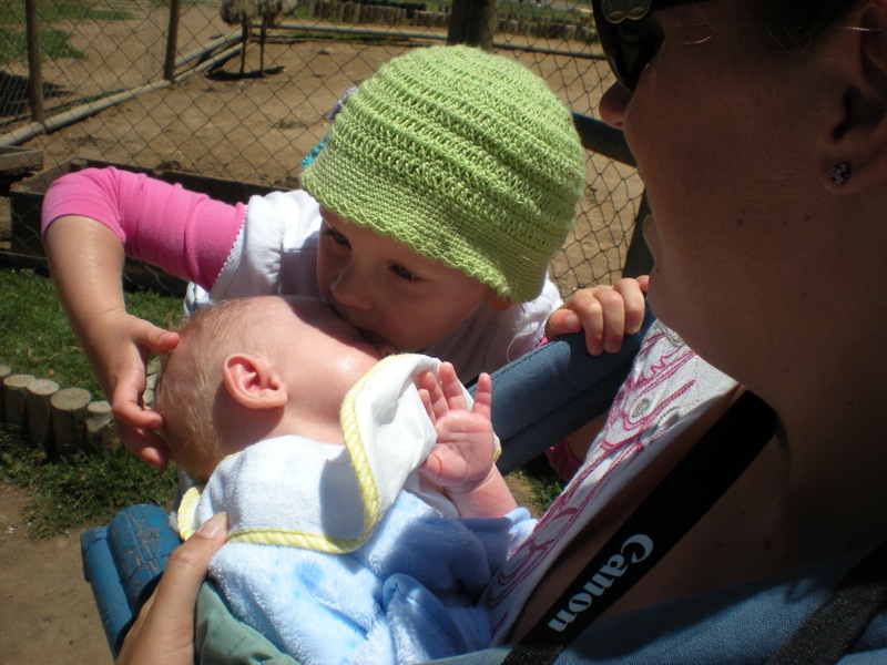 Since it was such a beautiful day today, we decided to head to the beach. We brought the christmas hats that Grams made with yarn from Great Grandma, with the hopes of getting a good picture to send to her.