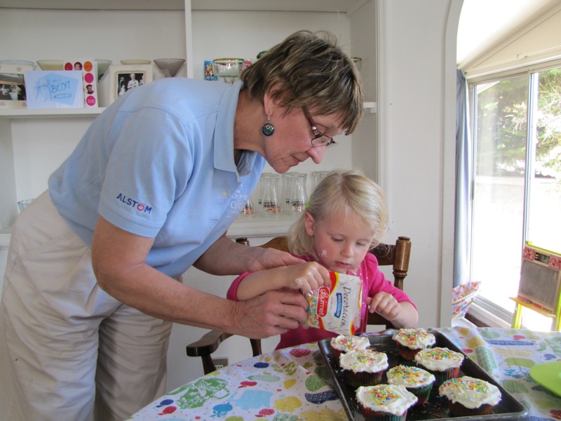 Penny and Grams have been having a wonderful time together. One of Penny’s favorite things to do is help in the kitchen, so yesterday, she helped Grams make a cake and some cupcakes for Elias’ birthday. The cake and cupcakes were a hit at the party!