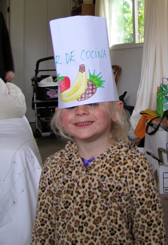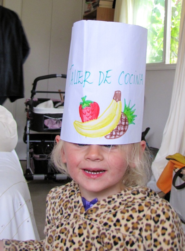Penny had cooking class in jardin yesterday. Not only did she get to make a cool chef’s hat, she learned how to make strawberry and pineapple juices!