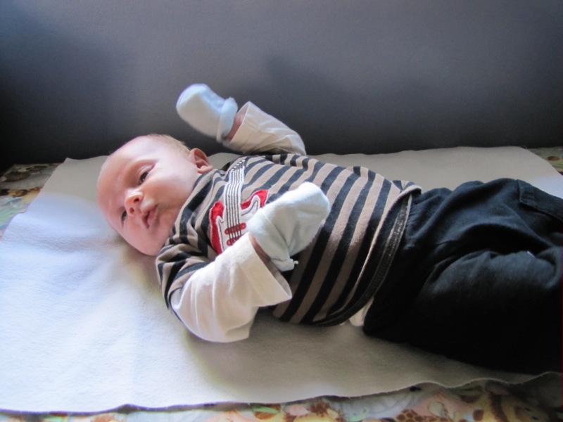 I can’t believe how fast the past 6 weeks have flown by! Teddy has grown and changed so much! He went for a check up last week and has gained 2 pounds and now weighs 11 pounds and is 22 1/2 in long! His neck has also gotten stronger and he can hold his head up for a bit during tummy time. He’s been getting on more of a schedule with his sleeping and even slept through the night last night!