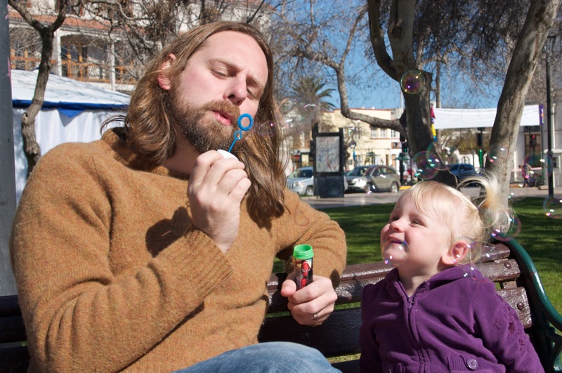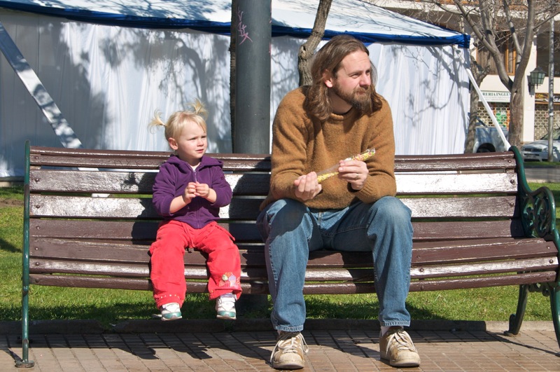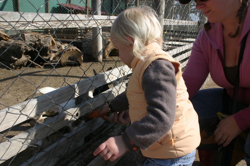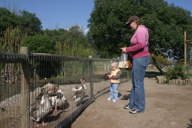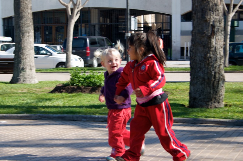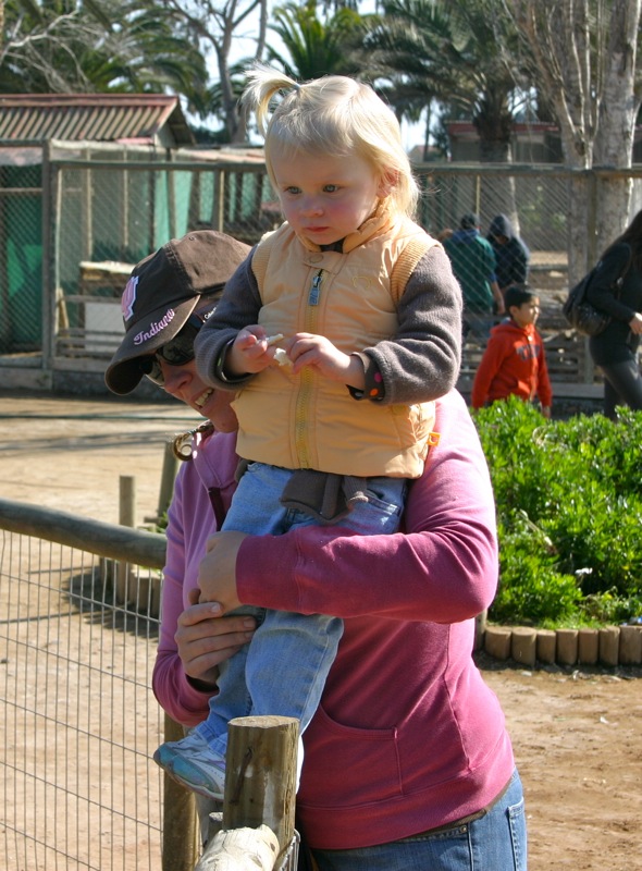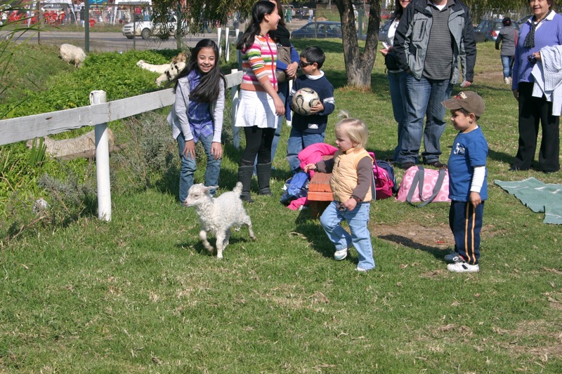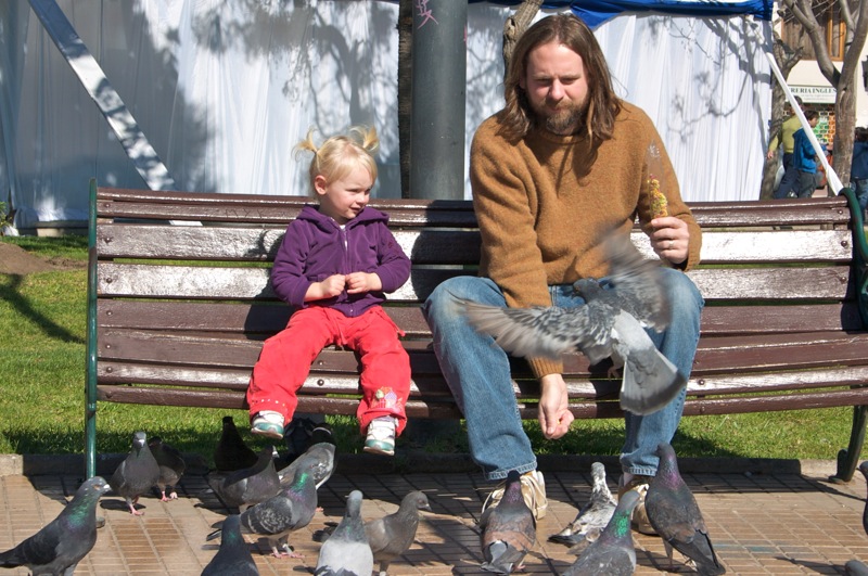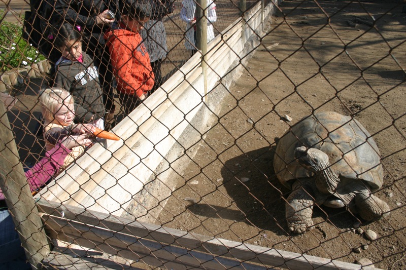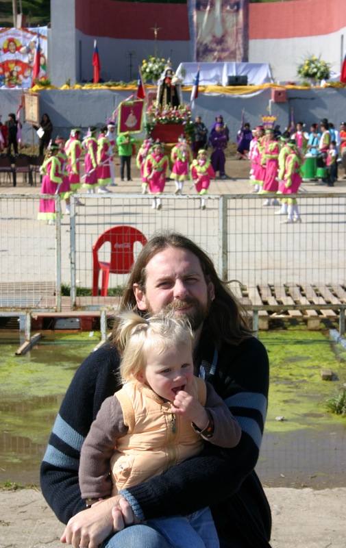 Friday was a holiday here, Virgen del Carmen day, so Steve had the day off from work. Â To celebrate we headed to the zoo with some food in tow to feed the animals. Â Penny had a blast feeding the ducks and rabbits and the big tortoise! Â She even got to chase around a litle lamb. Â We then followed the beat of some drums across the street and found a big Virgen statue that must have been paraded through the streets earlier. Â Though we missed that, we were lucky enough to find groups of people dressed in indigenous garb and dancing for her.