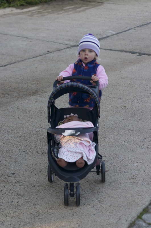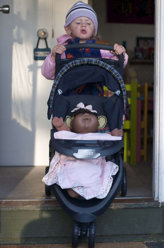 Steve and I wanted to get Penelope a doll stroller for her birthday, but were unable to find one. Â We found one today while we were downtown and Penny loves it! Â Seeing Penny and her doll stroller brings back fond memories of the all the girls on Westland ave giving doll parades. Â I can’t wait for Penny and her friends to start having them!