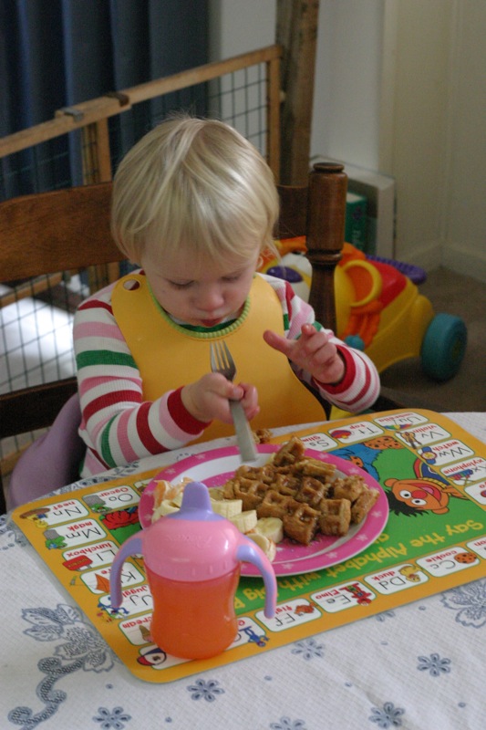 This morning, we all sat together at the table for a waffle and fruit breakfast. Â A perfect way to start the day!